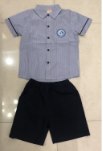 1 | 夏季套裝 | 本次采購的夏季園服男女均為深藍色拉架棉加條紋淺藍色條襯衫布,左胸前縫制幼兒園標識,要求雙線(xiàn)刺繡工藝,清晰精細,不掉色不脫落,藏青色服裝布料含棉量為95%+5%氨綸,達到環(huán)保棉的針織棉布標準的質(zhì)量要求。女為連衣裙,男為上下二件套,上衣為襯衫布,下褲為藏青色拉架棉。 | 套 | 男女 各1套 |
